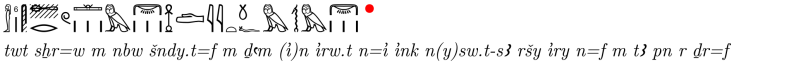Ricordo che il testo in ieratico è scritto sempre da destra a sinistra; nella trascrizione geroglifica, per comodità, il testo va da sinistra a destra.