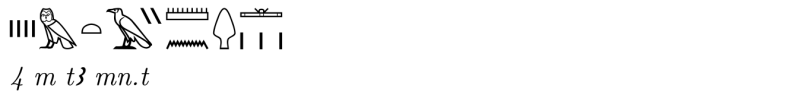Il termine mn.t è, probabilmente, scritto in modo anomalo dall'autore dell'appunto (col simbolo ieratico per "l'albero M1" preso, forse, "in prestito" da mnw "piantagione"); sarebbe interessante sapere se si tratta di un errore o (meno probabilmente) di una variante consentita.