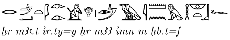 Nota: il sole della rappresentazione dell'Horus di Behedet forma con i simboli sottostanti il nome di incoronazione di Seti I: Men-Maat-Ra.